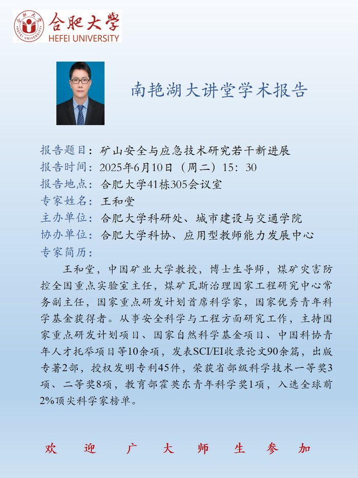 【南艳湖大讲堂】矿山安全与应急技术研究若干新进展
