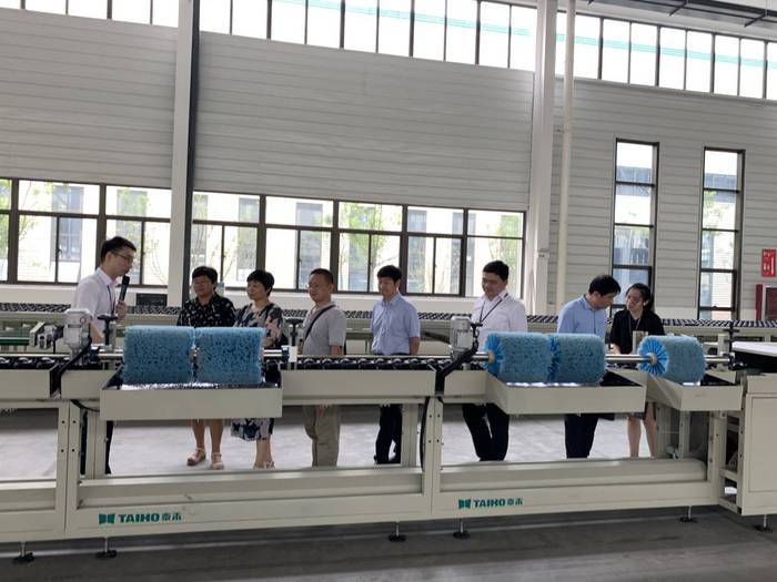 我校一行人先后参观了公司在智能检测分选设备、智能化仓储系统、工业机器人等产品的生产制造及设备的现场演示,并认真听取了公司自成立以来的发展历程、市场销售情况以及科技研发等方面情况。