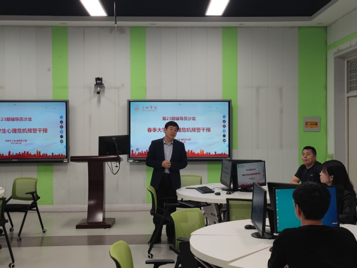 朱涛代表学工部对沙龙的顺利举行表示肯定。他指出,春季是学生心理工作开展的关键阶段,也是敏感阶段,结合当前常态化疫情防控工作中的新特点、新形势、新要求,有效、高效开展学生心理健康教育工作的紧迫性更加突出;要发挥好学校—学院—班级—宿舍“四级”预警防控体系的作用,积极为学生提供心理支持;要持续开展健康摸排与危机预警,做到早期发现、及时介入、有效干预,呵护好在校大学生的身心健康,维护校园和谐稳定。