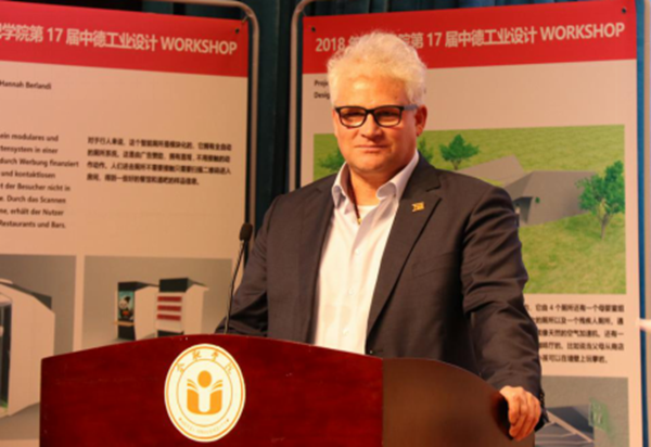 Anschließend hielt Professor Thies Krüger seine Rede. Zuerst dankte er herzlich der Universität Hefei und den betreffenden Unternehmen für die zur Verfügung gestellten Bedingungen und ihre tatkräftige Unterstützung. In dem zweiwöchigen Workshop kamen die ständigen Diskussionen und der Meinungsaustausch zu erfolgreichen Ergebnissen. Damit hoffte er darauf, dass die beiden Seiten aufgrund ihrer tiefen Freundschaft gemeinsame Anstrengungen unternehmen und den nächsten Industriedesign-Workshop gestalten könnten.