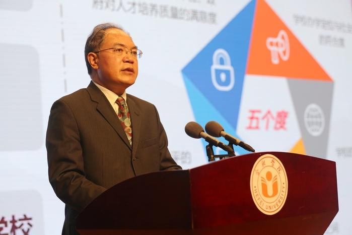 Zhao Zhenhua stellte im Bericht den Entwicklungsstand der anwendungsorientierten Hochschulbildung in Anhui vor und er wies darauf hin, dass die Provinz Anhui als Erste die theoretischen und praktischen Untersuchungen zur anwendungsorientierten Hochschulbildung durchführe, die Gestaltung der anwendungsorientierten Hochschulbildung auf höchstem Niveau stärke, Entwicklungsideen deutlich mache, das Bewertungssystem der anwendungsorientierten Hochschulbildung verbessere und das Entwicklungsmuster der anwendungsorientierten Hochschulbildung aufbaue. Die Provinz Anhui sei ein Vorläufer der anwendungsorientierten Hochschulbildung.Im nächsten Entwicklungsplan schlug er vor, dass Anhui den Geist der wichtigen Rede von Generalsekretär Xi Jinping während seiner Inspektionin Anhui weiterhin konsequent umsetzen werde. Mit dem Festhalten an der Bildungspositionierung im Dienste der regionalen wirtschaftlichen und gesellschaftlichen Entwicklung werde einequalitativ hochwertige Entwicklung geführt, mit dem Bildungsziel der standhaften Heranbildung der anwendungsorientierten Fachkräfte werde die qualitativ hochwertige Entwicklung verwirklicht, mit der Integration von der Produktion und Bildung werde die qualitativ hochwertige Entwicklung gefördert, mit dem Aufbau des Systems der Klassifikation und Unterstützung werde die qualitativ hochwertige Entwicklung garantiert, wobei hochqualitative Fachkräfte eine hinreichende Kernrolle spielen.