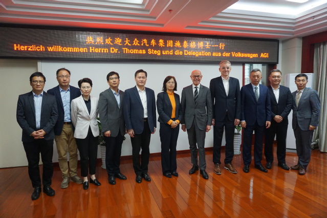 Am Nachmittag des 10. Oktober besuchte eine Delegation unter der Leitung von Dr. Thomas Steg, dem Executive Vice President und Leiter der Außenbeziehungen der Volkswagen AG, die Hefei-Universität. Die Delegation führte eingehende Untersuchung zur chinesisch-deutschen Zusammenarbeit der Hefei-Universität. durch und tauschte die Erfahrugnen über den Aufbau des Volkswagen-Institut aus. Der Parteisekretär Wang Qidong empfing die Delegation der Volkswagen AG, während die Präsidentin Wu Chunmei Gespräche mit den Vertretern der Volkswagen AG führte.