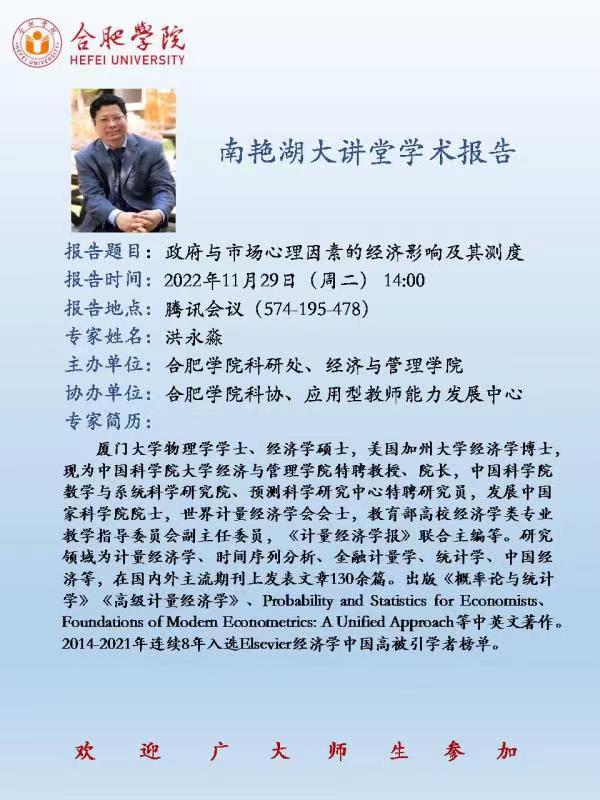 【讲座预告】政府与市场心理因素的经济影响及其测度
