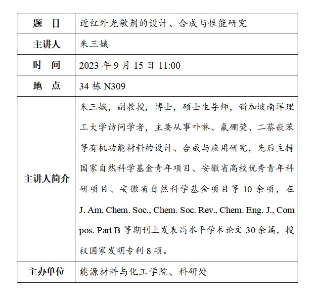 【善思讲坛】近红外光敏剂的设计、合成与性能研究