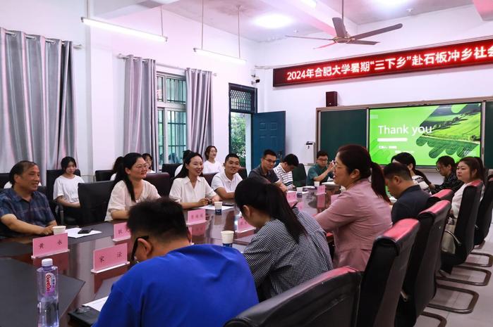 为了解语言文化与传媒学院暑期“三下乡”社会实践团队在六安市裕安区实践活动的工作进展,校团委书记张应杰、语言文化与传媒学院党委副书记张爱萍、团包河区委书记吴晓雯、团裕安区委书记管娇娇等一行人赴六安市裕安区石板冲乡,指导暑期“三下乡”社会实践工作。在到达石板乡初级中学后,大家来到教室,现场观摩了美术课程的教学,与学生们亲切交流,为他们分发学习用品和体育用品,勉励他们树立理想,好好学习。在汇报交流会上,大家就高校与地方政府合作开展大学生社会实践活动情况进行交流探讨,双方就建设常态高效的合作机制达成了一致意见。